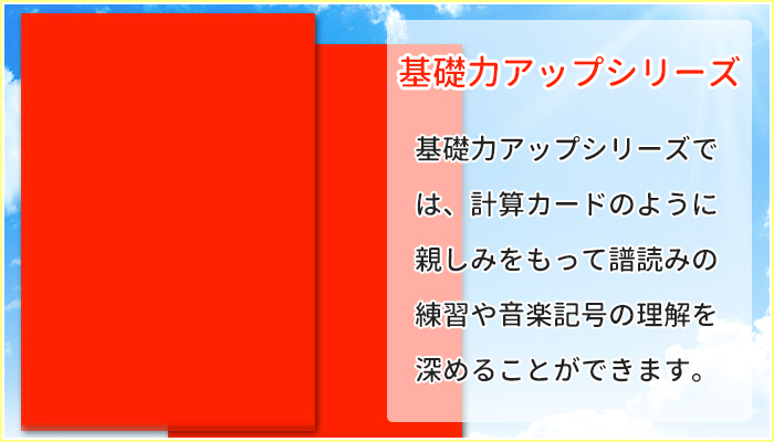 楽譜によく出てくる音域の譜読み練習を、音域ごとにドリル形式にまとめました。基礎力アップシリーズの音楽カードに対応しているので、音楽カードと併用してより一層譜読み力アップが期待できます。